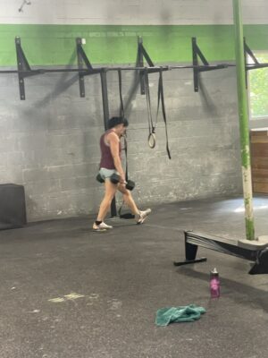 AMRAP 26 100m Dbl DB Farmer Carry (45’s/35’s) 500/400m Row 100m Dbl DB Farmer Carry 400m Run C: 35’s/25’s M: S-Arm 35/25