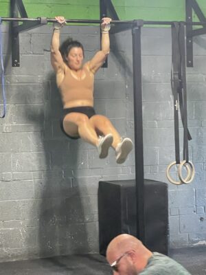 Part A: Establish a 1 RM Power Snatch Part B: 5 Rounds 3 RMU 10 Alt. DB Hang Snatch (50/35) 5 Burpee Box Jump Over (24/20) Rest 1 min between rounds. C: 5 C2B Pull Up, 45/35 M: 5...